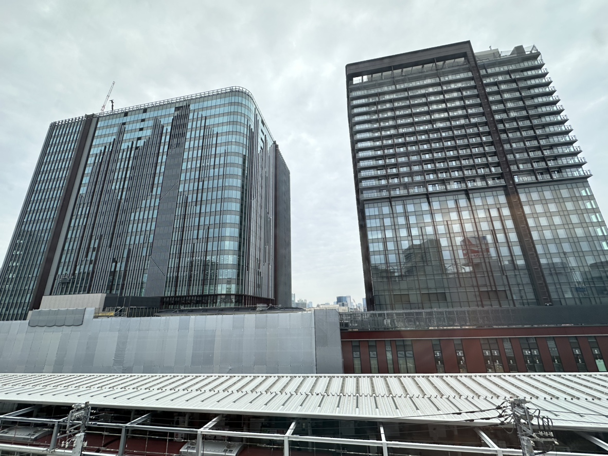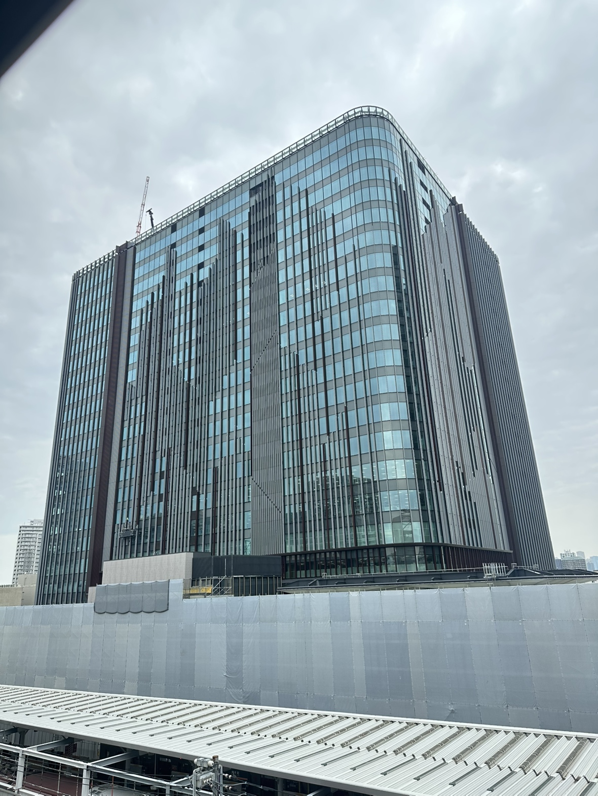 建築の進み具合はというと、右側の建物のカバーはようやく全部外れましたが、左側のカバーは付いたままです。きっと見えないところで進んでいるのでしょう。